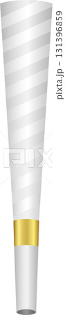 A white tube with a golden stripe and white diagonal stripes adorns a sleek container shape.