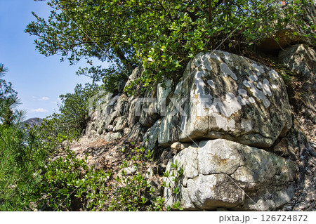 苔むした石垣の背景素材