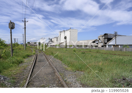 The old railway on the industrial outskirts of the city in summer