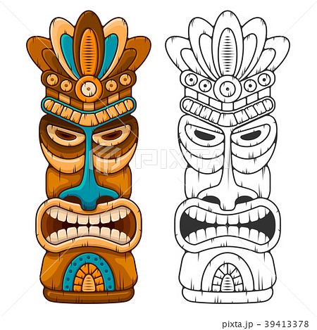 tiki mask ancient tropical totem head face idol made of wood cartoon stock vector illustration