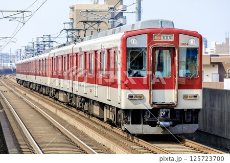 近鉄名古屋線の高架区間を走る近鉄1200系電車