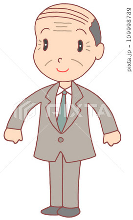 ノーネクタイのスーツの中年男性の立ち姿イラスト素材