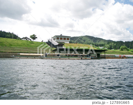 最上川芭蕉ライン舟下り乗船場の桟橋(山形県最上郡戸沢村)