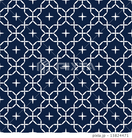 刺し子風背景・パターン 千鳥つなぎ(白 BG紺)
