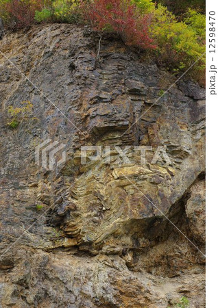 露出した地層(赤平川・左岸/埼玉県秩父郡小鹿野町)