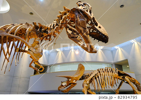 恐竜 ティラノサウルスとトリケラトプスの骨格標本