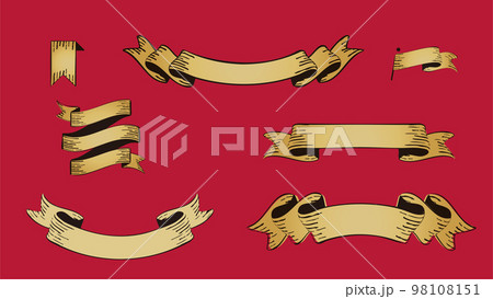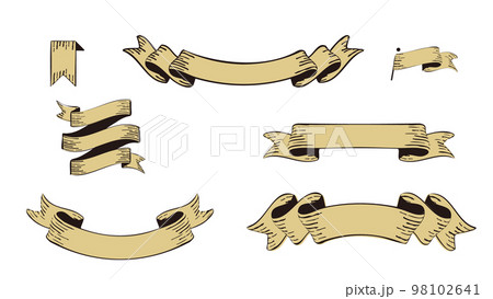ヴィンテージアンティークなリボン。手描き風のタイトル見出し。古風なデザイン素材セット
