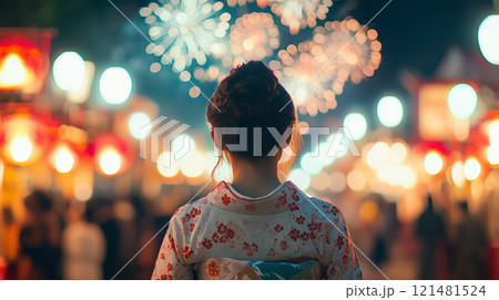 庭園の茶会と花火が織りなす伝統美を楽しむ着.