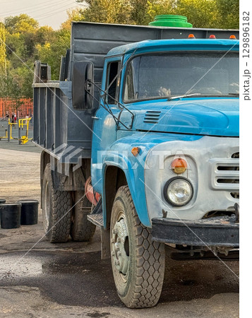 Open moving van with furniture and bags carperts loaded on a street . High quality photo