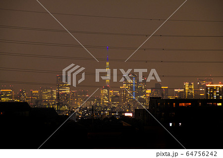 日本の東京都市景観 新型肺炎“都市封鎖”。“柵”(高圧電線)の奥に東京都心=8日、緊急事態宣言実施