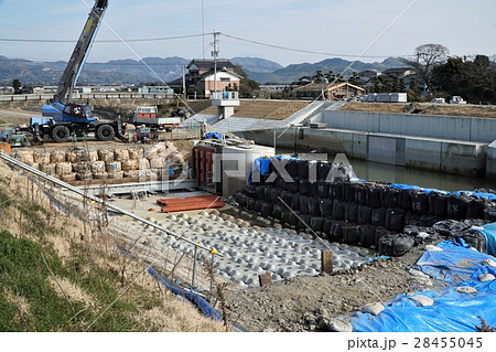 大水害後の河川改修工事 洪水で壊れた可動堰撤去後の新設工事