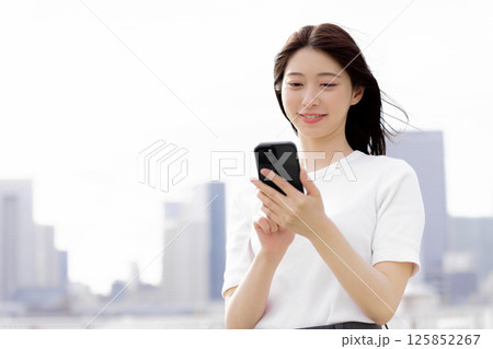 スマホで検索する若い女性