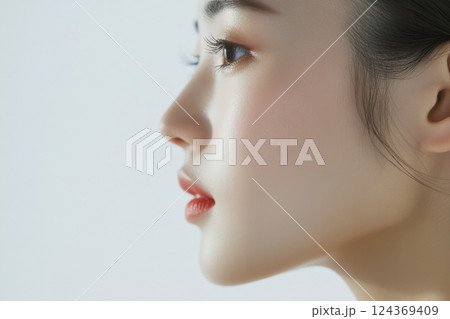 人物の横顔が美しい日本人女性、美容室でのリ