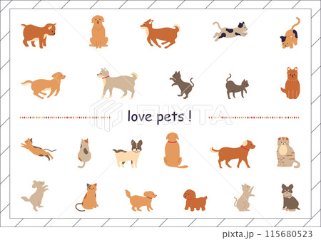 遊びに誘うシンプルで可愛い犬の手描きのイラストセットC 主線なし