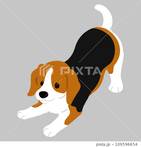 遊びに誘うシンプルで可愛いビーグルのイラスト 主線なし