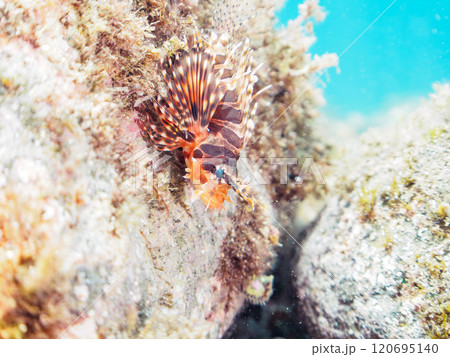 広げた羽根が美しいキリンミノ(フサカサゴ科)の幼魚。 静岡県伊豆半島賀茂郡南伊豆町中木ヒリゾ浜