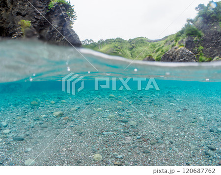 美しいヒリゾ浜の海の半水面撮影。 静岡県伊豆半島賀茂郡南伊豆町中木ヒリゾ浜2024年