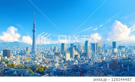 幻想的な夜景の東京の風景、アニメ風