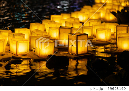 灯籠流し, とうろう流し, 流灯会 、お盆、夜景 、 富士河口湖