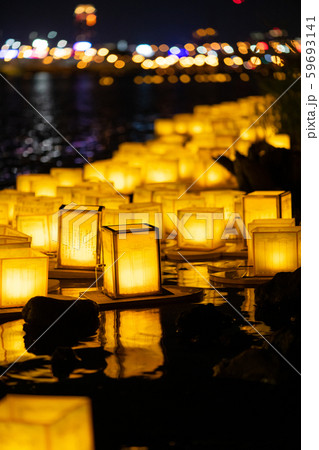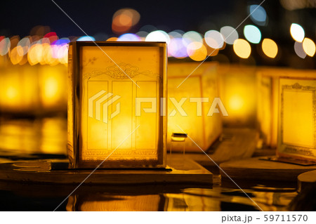 標題 灯籠流し, とうろう流し, 流灯会 、お盆、夜景 、 富士河口湖