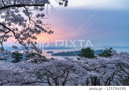 西行戻しの松公園の桜と松島湾 宮城県松島町