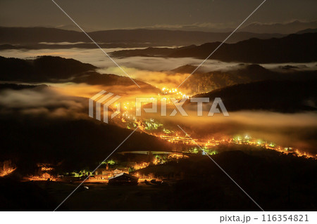 晩秋の利神城と平福の街並み 兵庫県佐用郡佐用町