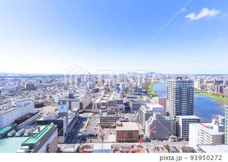 信濃川右岸(万代)から萬代橋と新潟島方向の街並み (俯瞰)