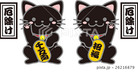 招き猫_黒まねき猫_厄除け招き猫_まねき猫のイラスト