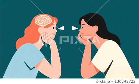 対話する女性 思考する脳のイラスト 心理学系コンテンツ用