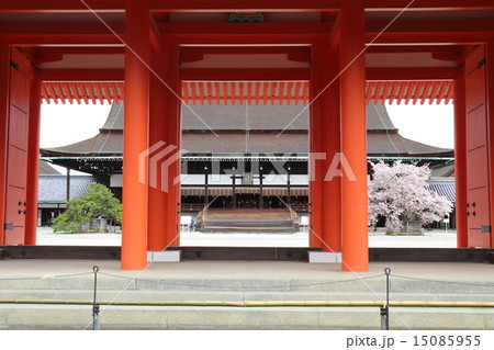 京都御所 承明門越しに見る左近の桜と右近の橘