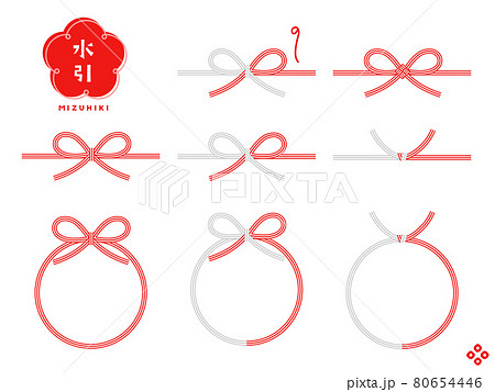 カラフルな水引のイラストセット 梅結び 蝶結び 叶結び あわじ結 あしらい 装飾