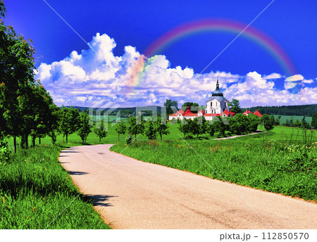 ゼレナーホラの巡礼聖堂に差し込む太陽光線