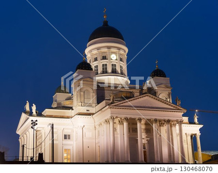 ライトアップされた夜明けのヘルシンキ大聖堂
