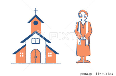 チャペルと牧師のイラストセット 建物と人物のイラスト素材