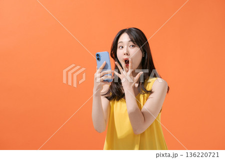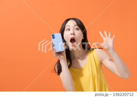 スマホを持つ驚いた表情の女性