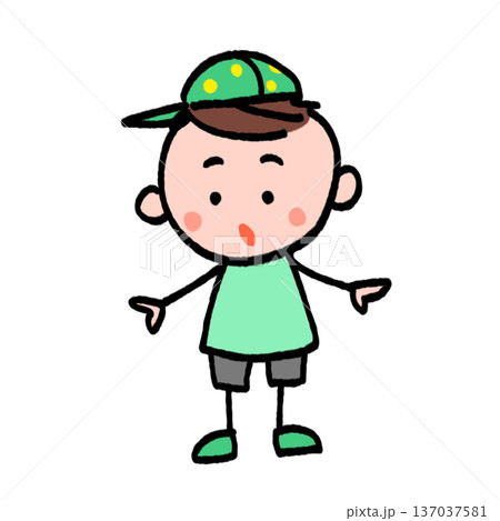 帽子をかぶってビックリしている男の子