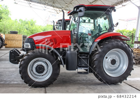 Harvesters and combine parts at the plant are waiting for sales, tractors and agricultural machinery, maintenance and exports