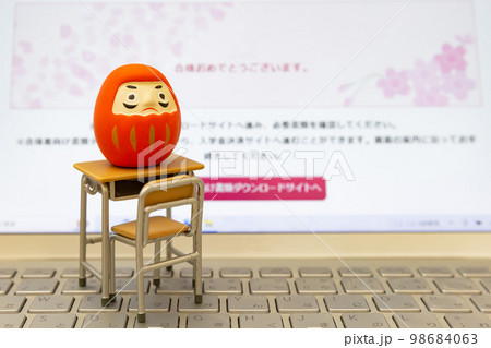中学入試 高校入試のイメージ ダルマとモニター画面の合格通知