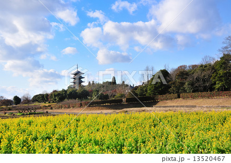 備中国分寺の春 菜の花と桃と五重塔3 岡山県総社市