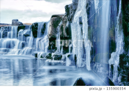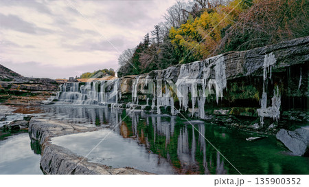 端が氷瀑になっている滝