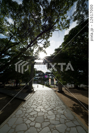 山口県萩市 松陰神社の鳥居から松下村塾を見る