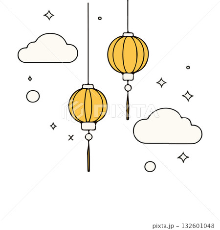 Minimalist Lanterns and Clouds Illustration