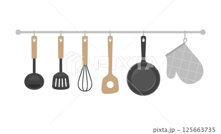 壁に掛けたキッチン用品のイラスト素材