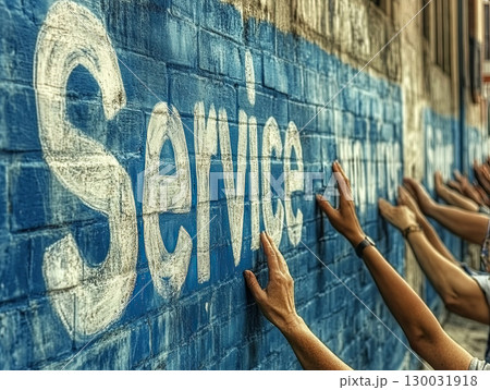 Conceptual digital art of multiple white hands surrounding and protecting red heart on textured blue background charity and support theme