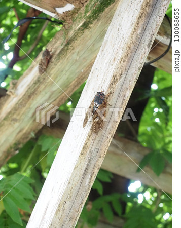 藤棚にとまったアブラゼミ