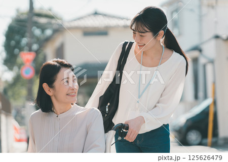 シニア女性に同行する女性