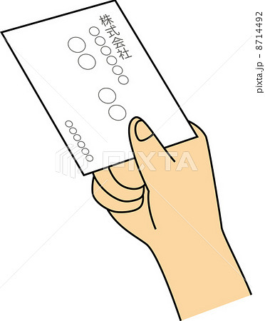 縦向きの名刺を差し出す手のイラスト_主線あり