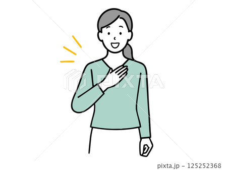 胸に手を当てて笑顔で挨拶する女性ビジネスパーソンのイラスト