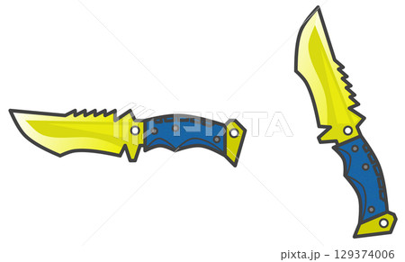 サバイバル料理などで使用する危険で鋭いナイフのイラスト