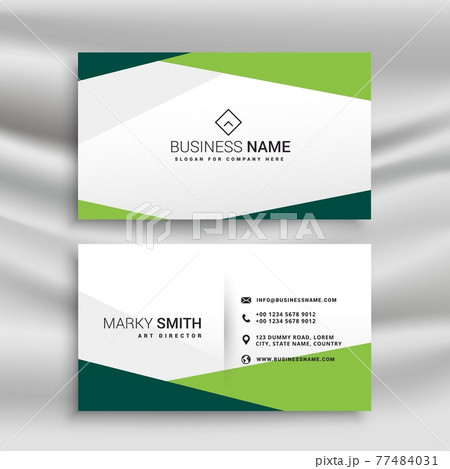 green and white business card with abstract geometric shapes